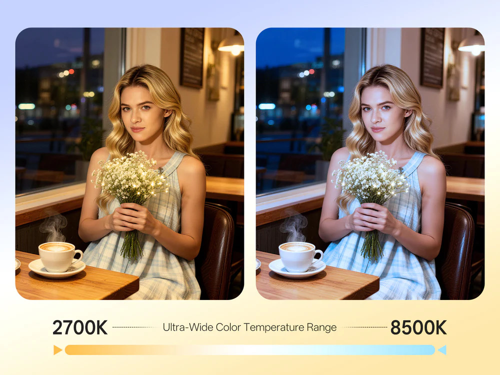 2700K–8500K gibi ultra geniş renk sıcaklığı aralığıyla FIVERAY M40 SE, her ortama ve duyguya kolayca uyum sağlar.